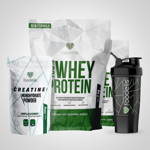 Pack 2kg Proteína Whey + 300g Creatina Monohidrato Creapure® + Shaker