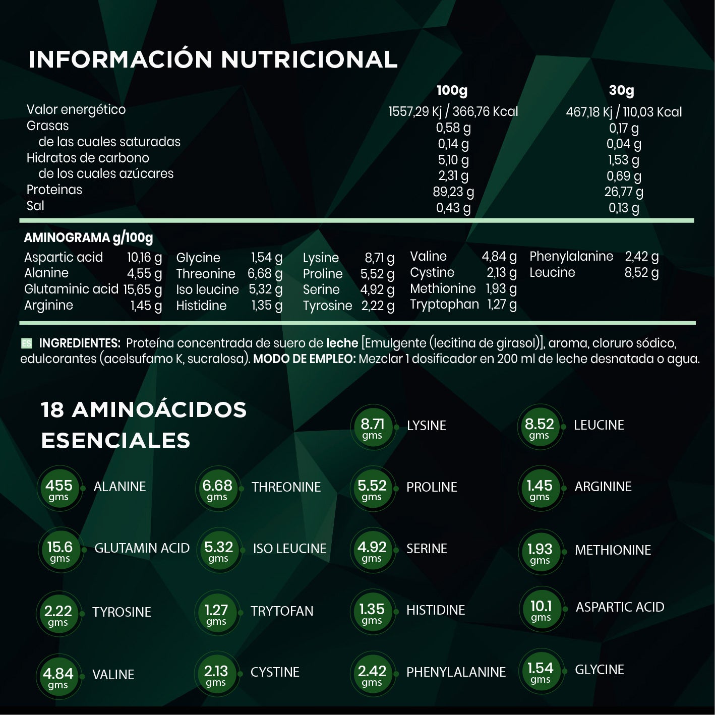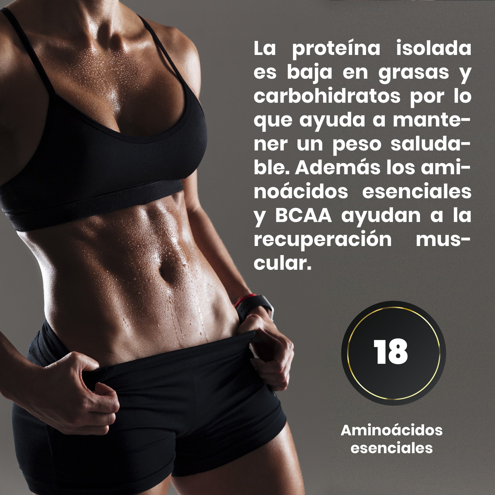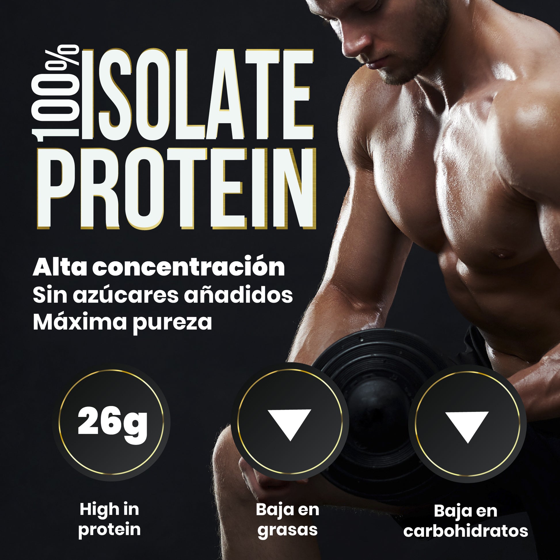 Aislado de proteína de suero de leche premium (WPI90) con más de 26 g de proteína por toma, formulado para una absorción rápida y una pureza excepcional. Ofrece alta calidad nutricional y un aminograma completo sin aminoácidos añadidos. Enriquecida de forma natural con L-glutamina, L-leucina y L-arginina, es ideal para optimizar tu rendimiento, acelerar la recuperación muscular y mantener un perfil bajo en grasas y azúcares.