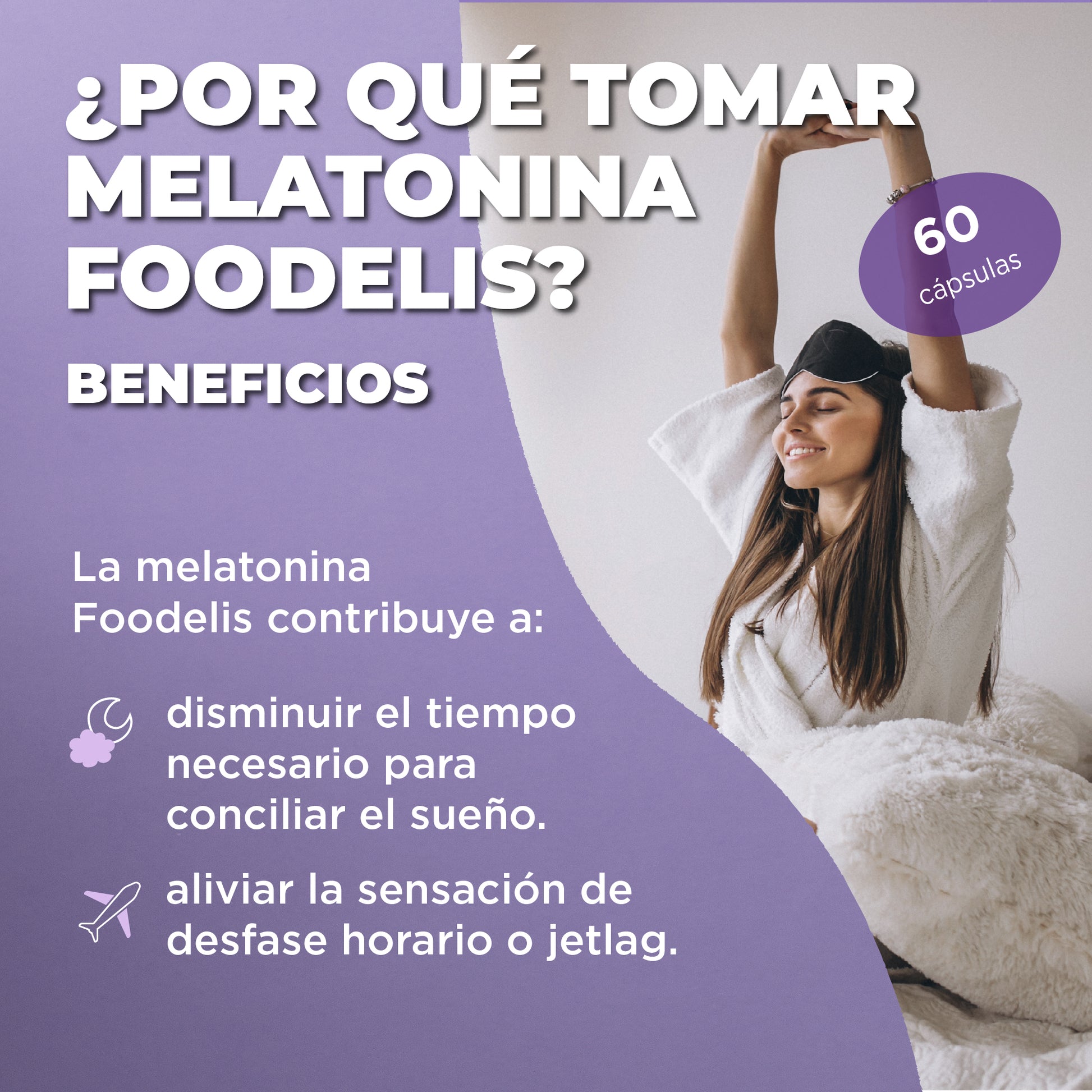 Tomar 1 mg de Melatonina antes de irse a dormir contribuye a disminuir el tiempo necesario para conciliar el sueño y alivia el jet lag tomándose antes de acostarse el primer día de viaje y unos días después de la llegada al destino.