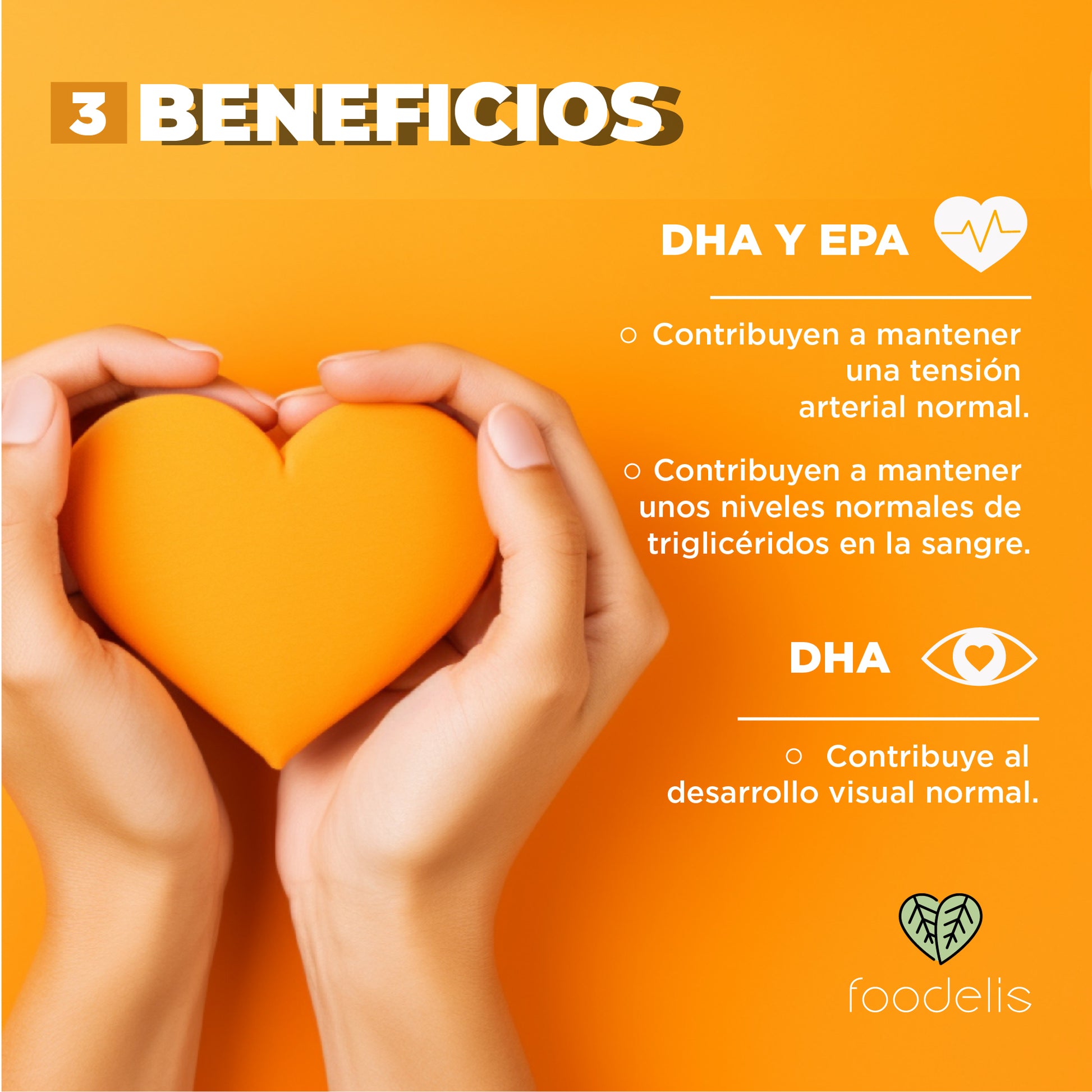 Omega 3 Cardio de Foodelis es una formulación única de alta dosis y biodisponibilidad a base de componentes cuidadosamente seleccionados y seguros. Sus ingredientes actúan de forma conjunta para potenciar los beneficios para tu organismo.